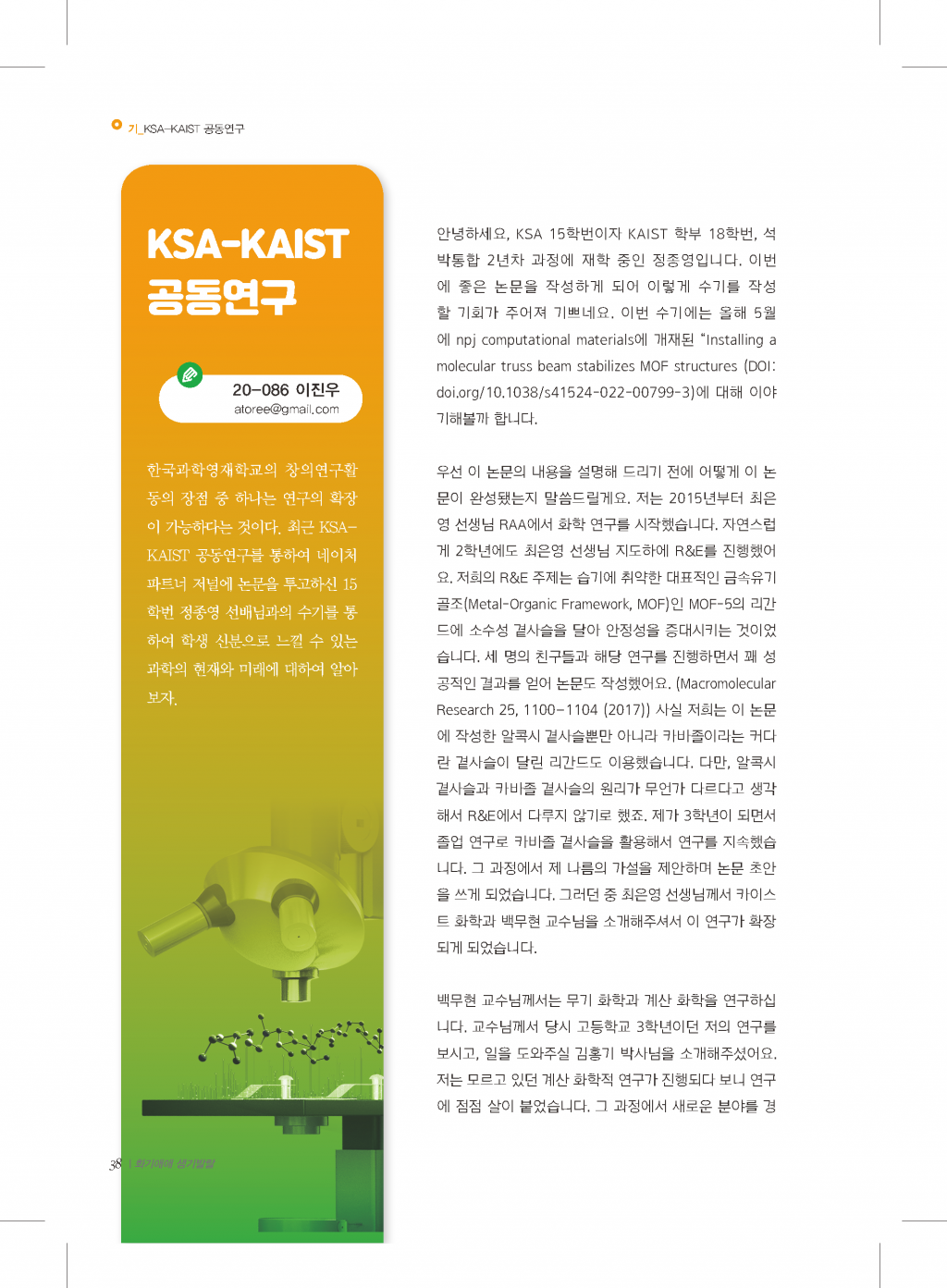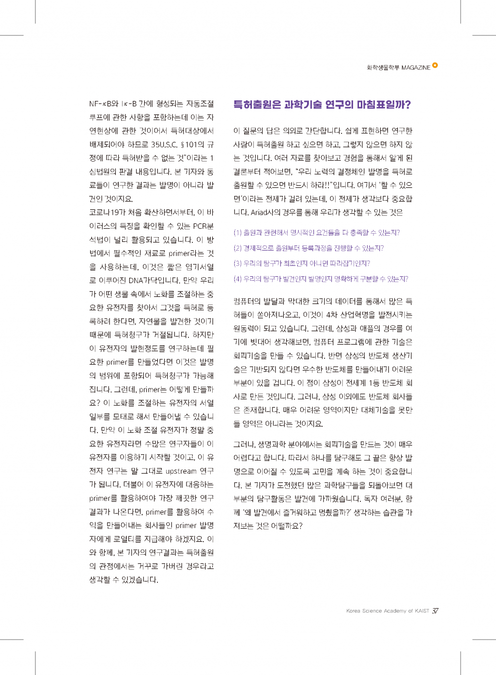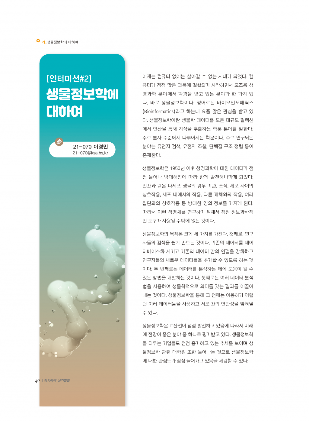 기: 기획기사 화학과 생물학의 현재와 미래 2022_화기생기_페이지_33.png (747.02KB,76)2022_화기생기_페이지_34.png (709.26KB,83)2022_화기생기_페이지_35.png (569.6KB,87)2022_화기생기_페이지_36.png (802.53KB,73)2022_화기생기_페이지_37.png (565.61KB,94)2022_화기생기_페이지_38.png (713.95KB,84)2022_화기생기_페이지_39.png (144.12KB,82)2022_화기생기_페이지_40.png (457.26KB,82) 목록 표지+목차+인사말관리자2023-03-21 화: 화학생물학부 이모저모관리자2023-03-21 기: 기획기사 화학과 생물학의 현재와 미래관리자2023-03-21 생: KSA에서 대학원까지, 연구자의 길관리자2023-03-21 기: 알려줘요! 대회, 행사, 학술 발표관리자2023-03-21 편집후기관리자2023-03-21